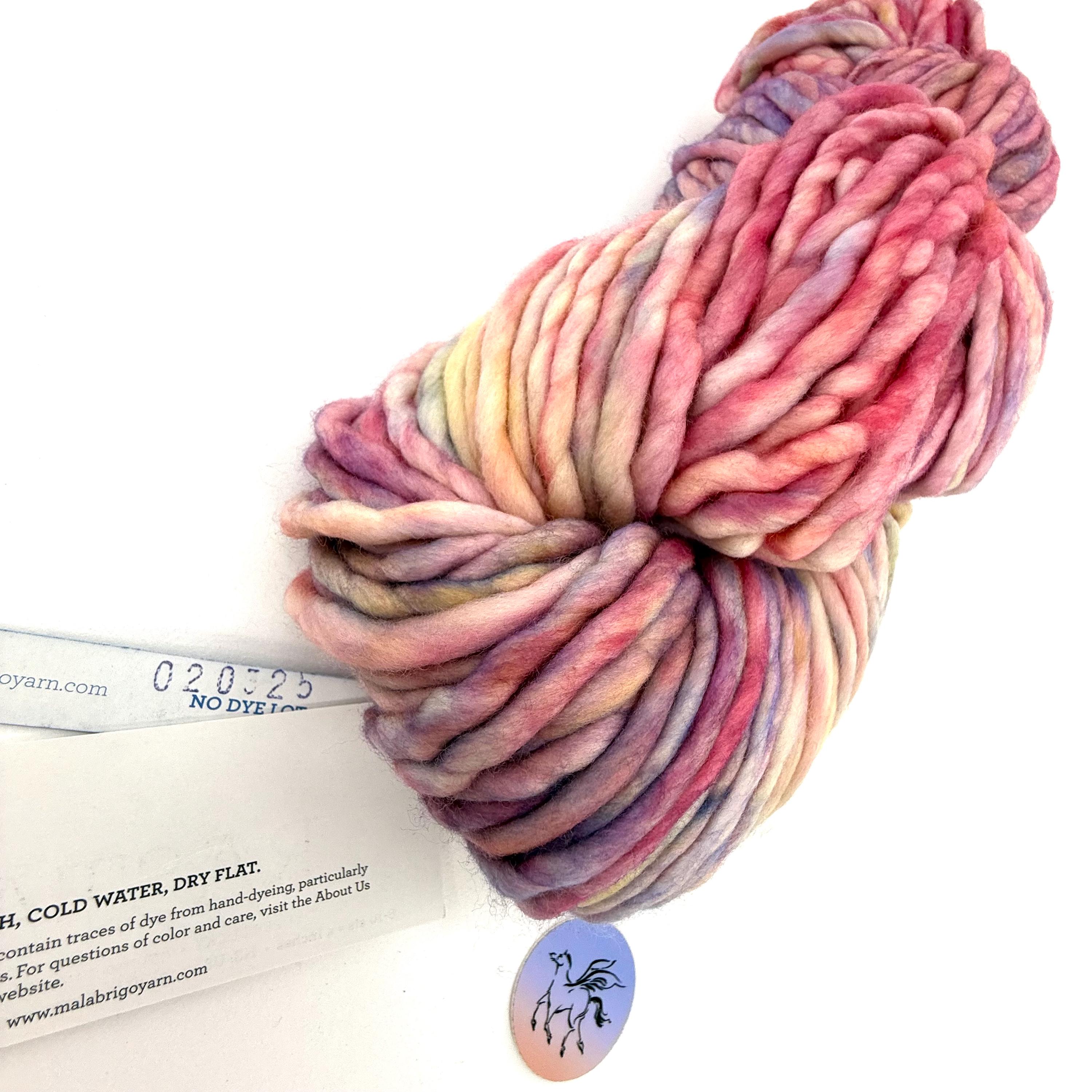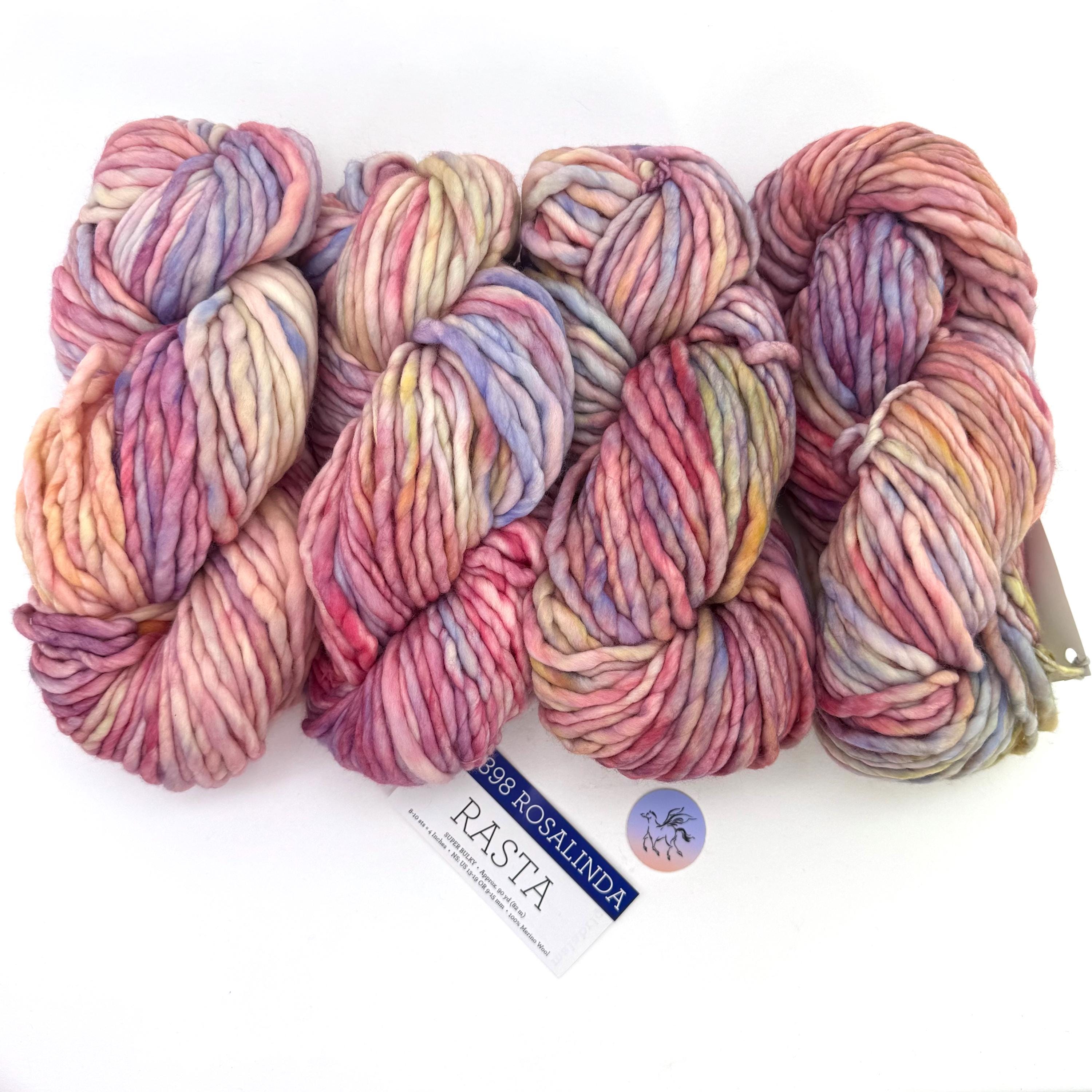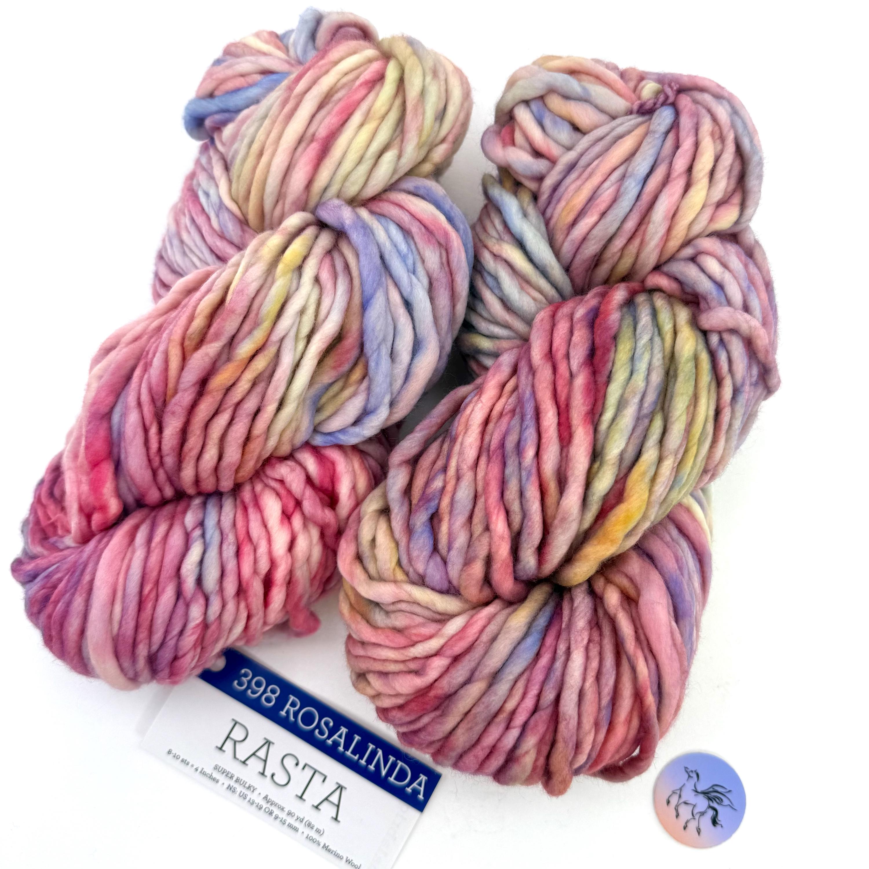 Malabrigo Rasta Yarn is a super bulky weight, kettle dyed yarn from Peru. Rasta is single ply, slightly felted with a twist, very soft Merino wool yarn. A great choice for warm winter accessories, big cozy afghans, and for crochet or knitted stockinette that's far from boring. Be sure to get enough yarn to complete your project as each bag of 5 is a different batch and may vary from bag to bag. All hanks in this listing were dyed at the same time-No Dye Lot #. Hanks may vary slightly even within the same bag. Priced per hank