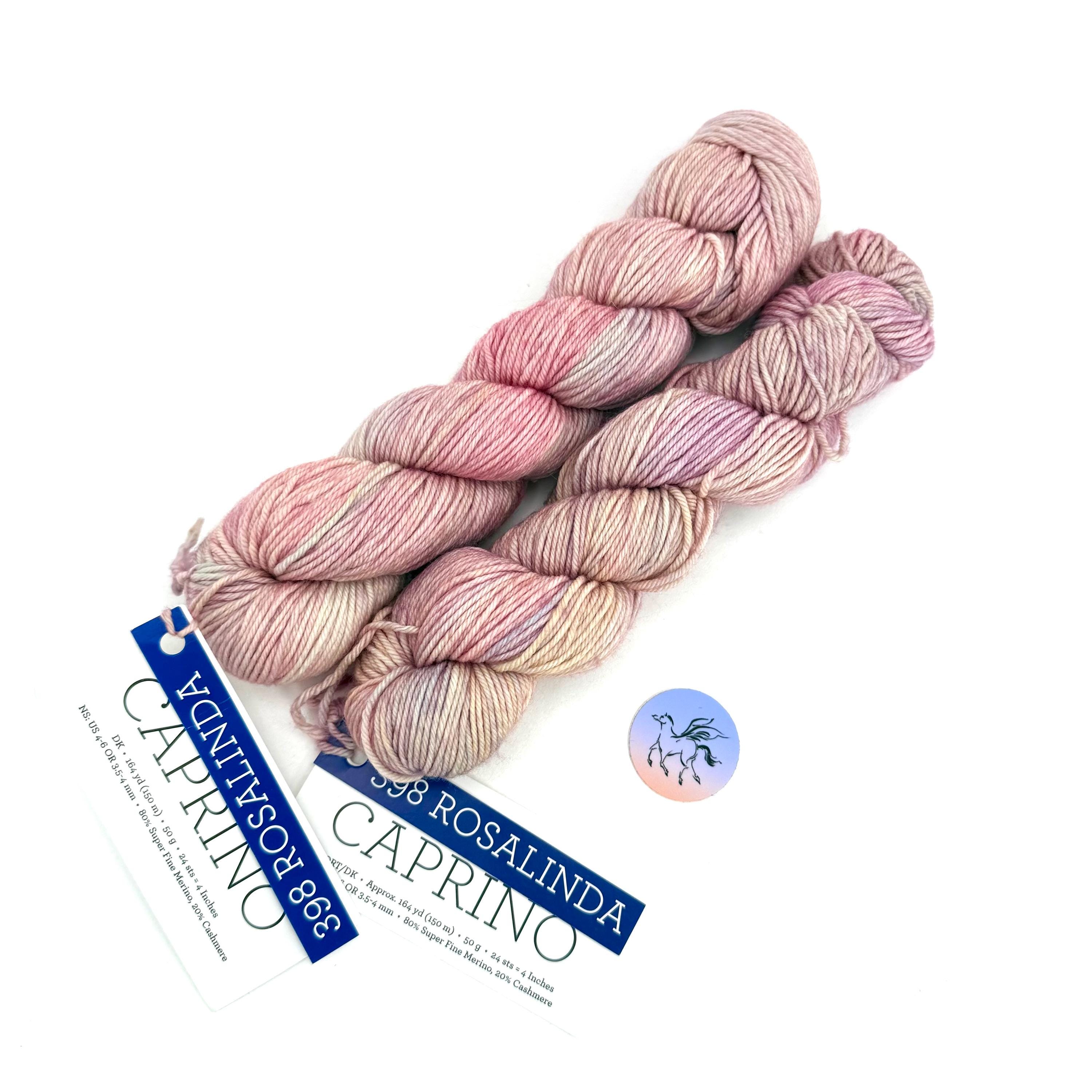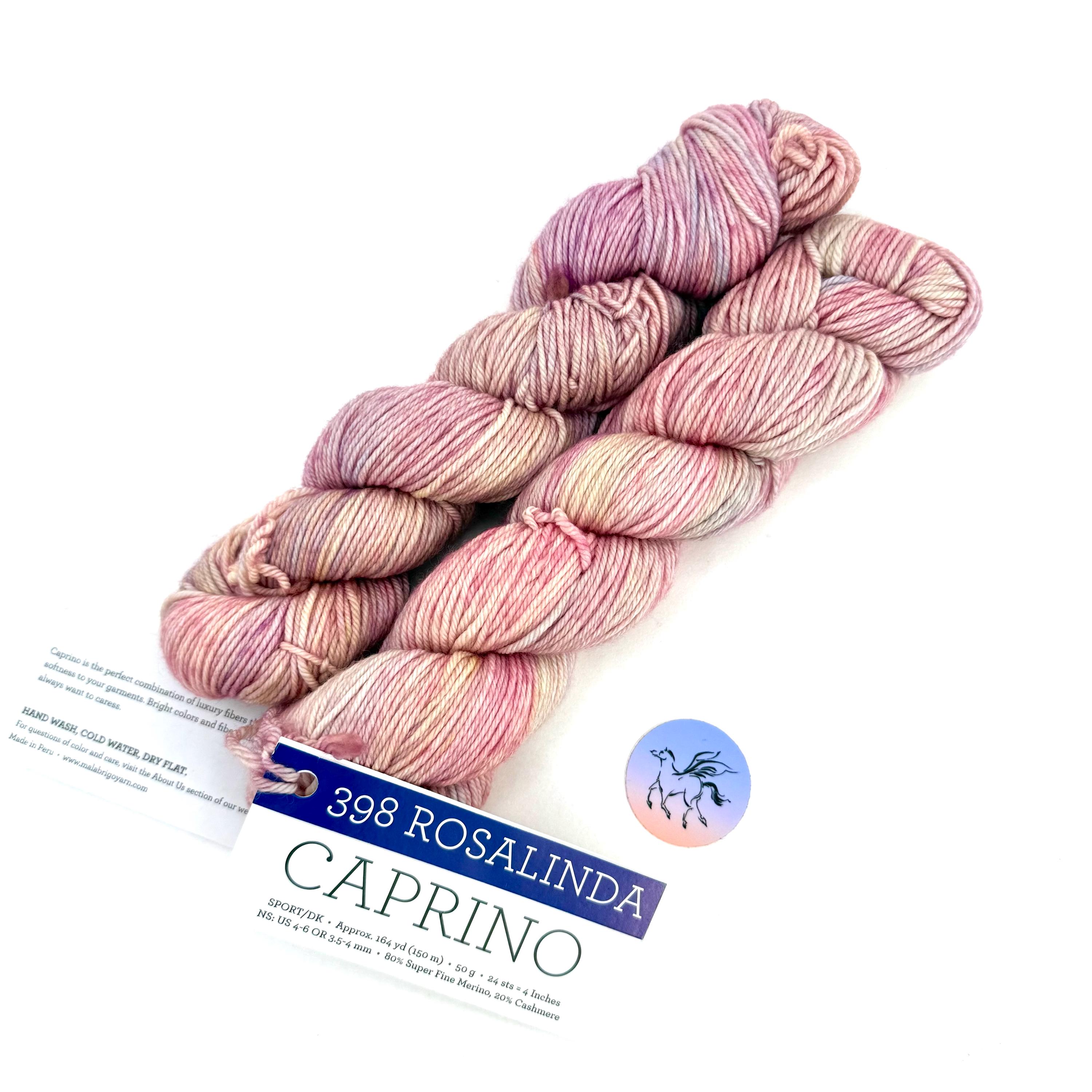 Malabrigo Caprino Yarn is the perfect combination of luxury fibers that assure a special softness to your garments. Rosalinda is New Malabrigo color kettle dyed onto fibers that you will always want to caress. 80% Super Fine Merino blended with 20% Cashmere this yarn is perfect for accessories and hand-wash-friendly garments, next-to-skin wear, lace, cables, color work, and textured stitches.