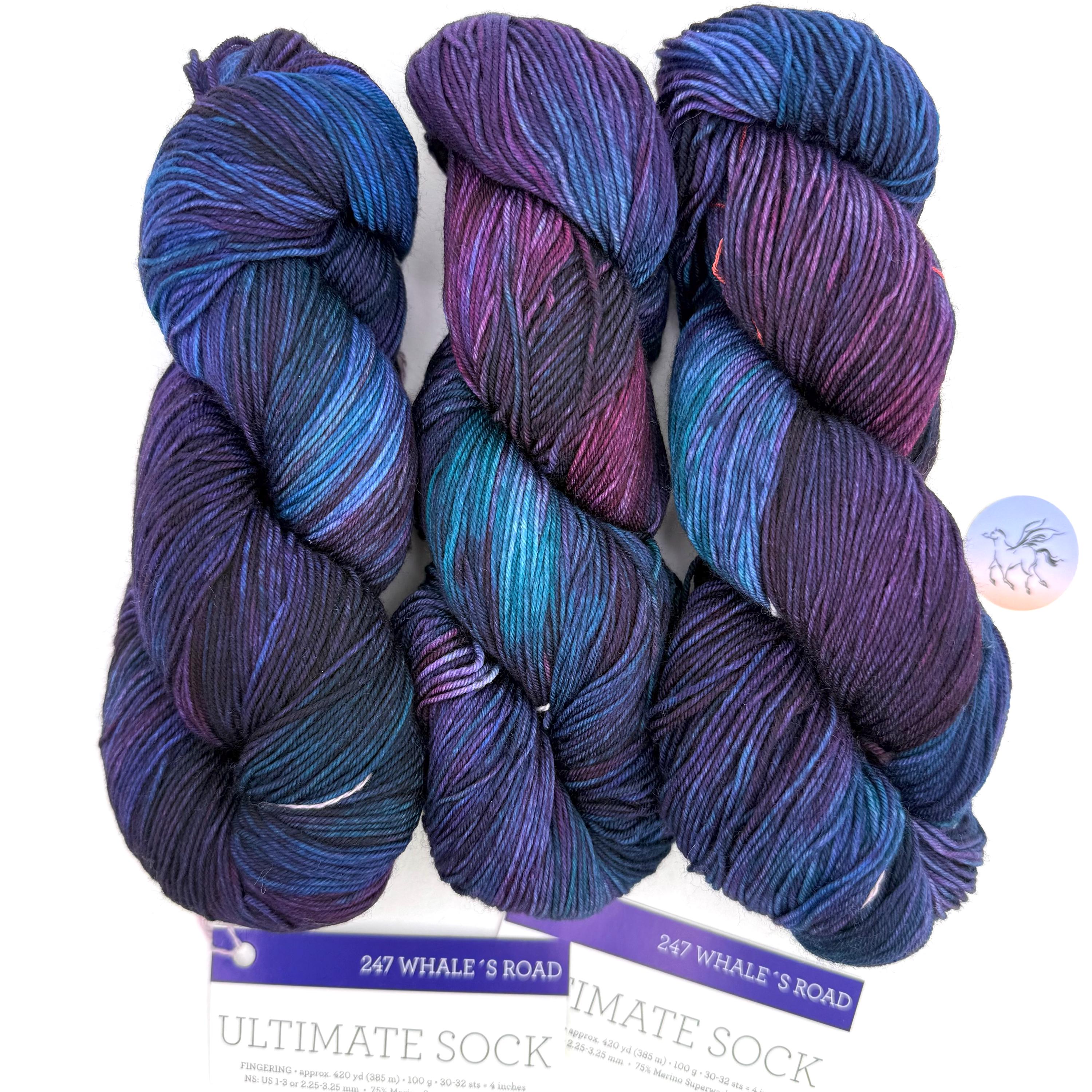 Ultimate Sock takes Malabrigo sock yarn and elevates it a level by adding 25% Nylon to the superwash merino that everyone already knows and loves. It is perfect to knit lovely socks and make sure they will be resistant and durable at the same time. Great for: Socks and garments with a lot of friction. This listing is for the color Whales Road 247 blended sock yarn called Ultimate Sock a 4-ply fingering weight yarn. Photos of the hanks in this listing. Dye Lot: 01 09 25