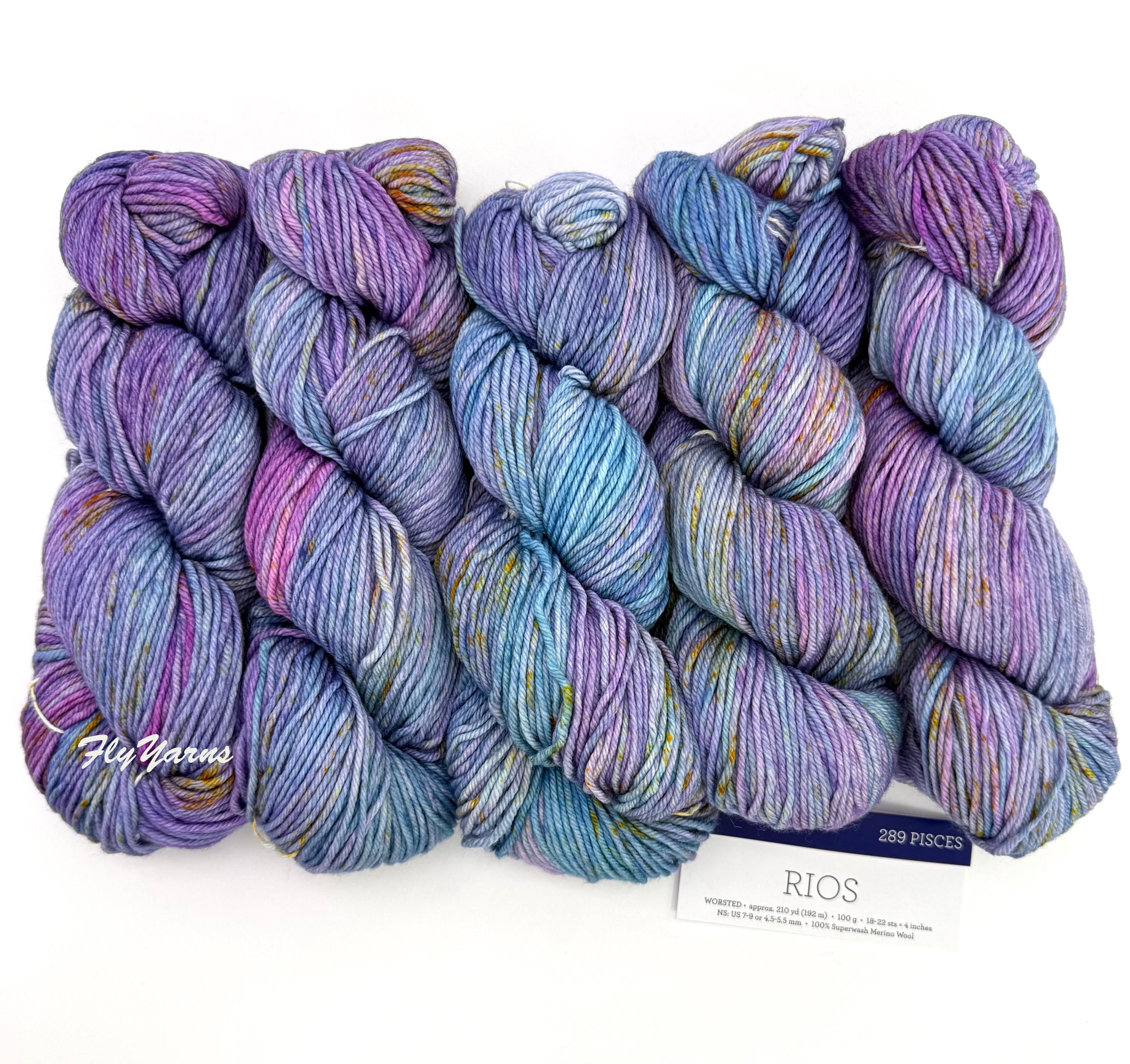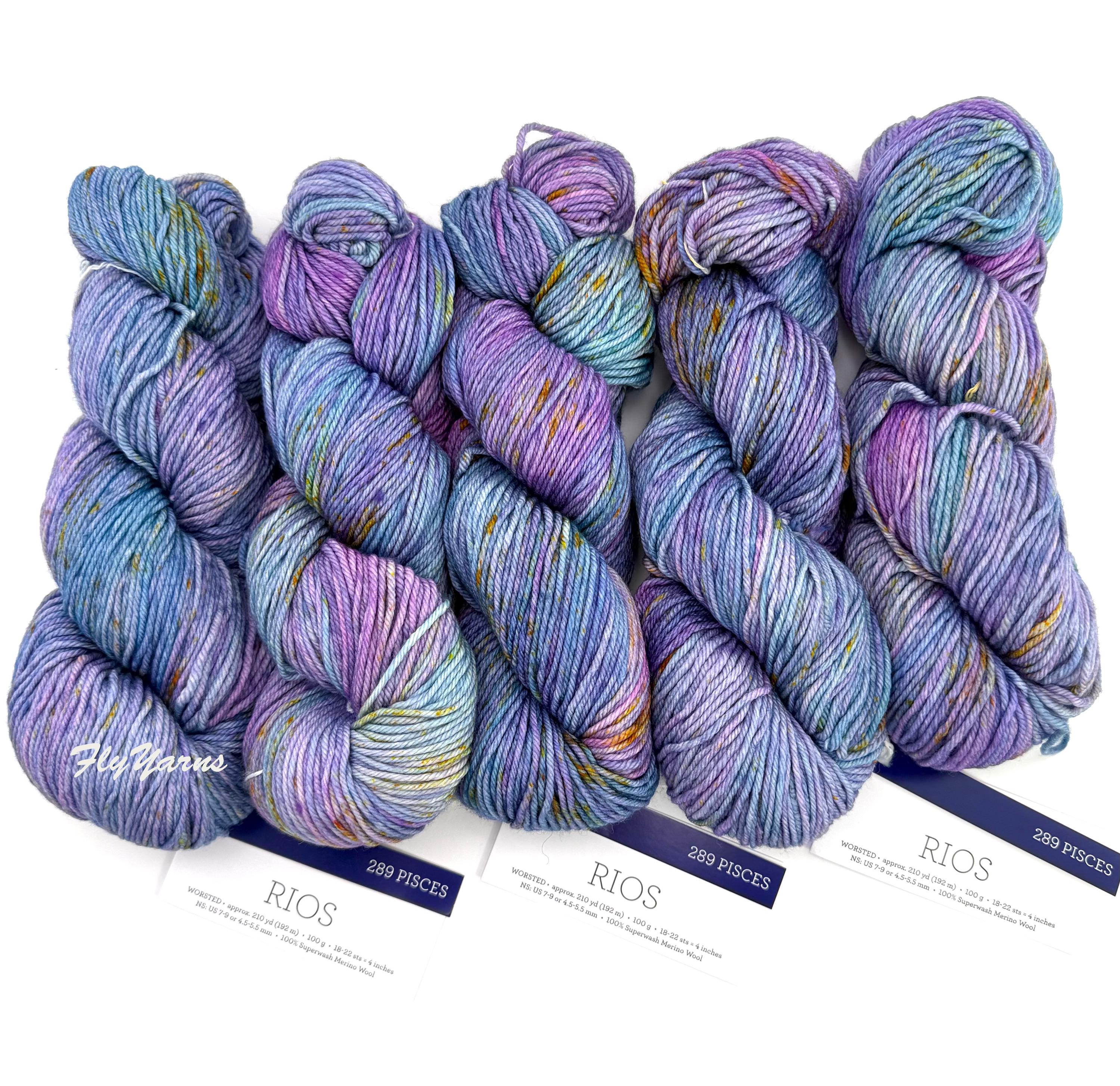 Malabrigo Rios Yarn is a 4-ply, 100% pure Merino Superwash wool which is hand-dyed. This listing for the color PISCES Rios 289, is a mulit-colored, worsted weight yarn, 10 ply wool. Malabrigo creates 10 hanks in a dye lot. A gorgeous hand-dyed Merino wool in a turquoise, rose and lavender is Malabrigo's unique Pisces. Priced per hank.