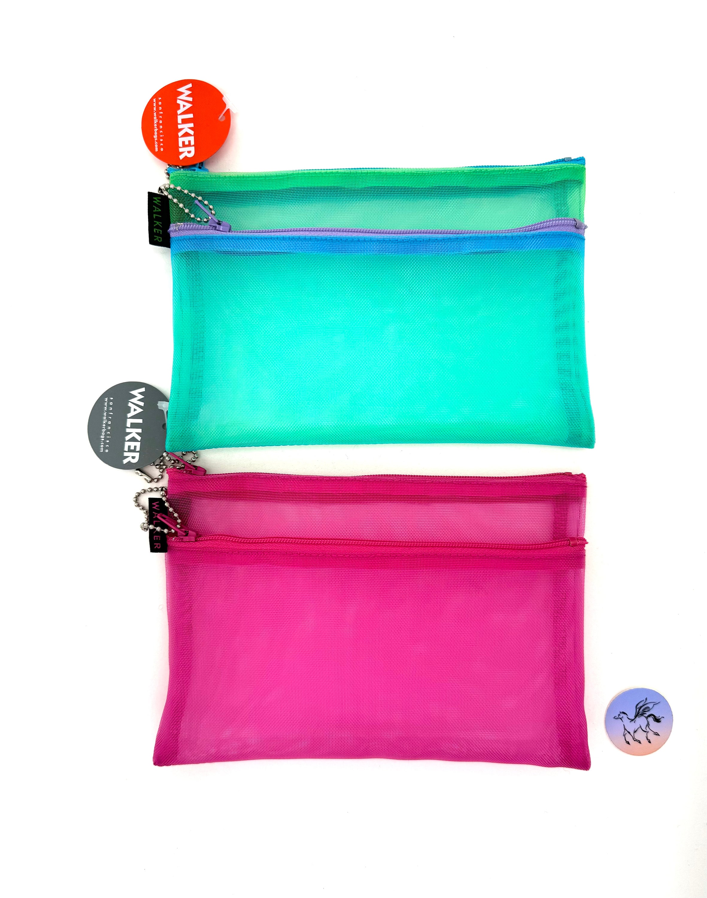 Walker Mesh Double Zipper Small Notions Bag holds your smallest notions like cable needles, darning needles, stitch markers and repair hooks. The nylon mesh allows you to view the contents without opening the bag. This bag has two compartments to separate your notions for perfect sorting. Put this small bag inside another bag so you don't have to dig to the bottom for that darn-it-needle. Choose your favorite color in the drop down menu.
