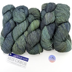 Dos Tierras means Two Lands, reflecting the sources of the two amazing fibers found in this ultra-soft new color Paracas. By spinning together 50% fine Uruguayan Merino wool with 50% baby alpaca from Peru Malabrigo has created a DK weight yarn that is as versatile as it is beautiful. When the good stitch definition and drape of this four ply yarn is combined with the amazing kettle-dyed semi-solid and variegated colors of Malabrigo you have the perfect palette to show off your stitch work. All hank are from the same batch a beautiful hand dyed Paracus a NEW Dos Tierras color. Priced per hank.