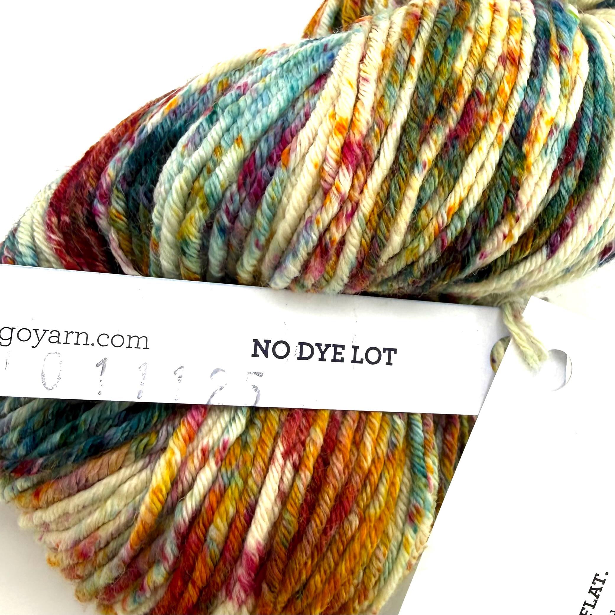Be sure to get enough yarn to complete your project since each bag is a different dye lot, and skeins may vary from bag to bag. Skeins may vary one from the other even within the same bag. To ensure random color distribution, work from two balls of yarn at once, alternating a few rows from each ball.