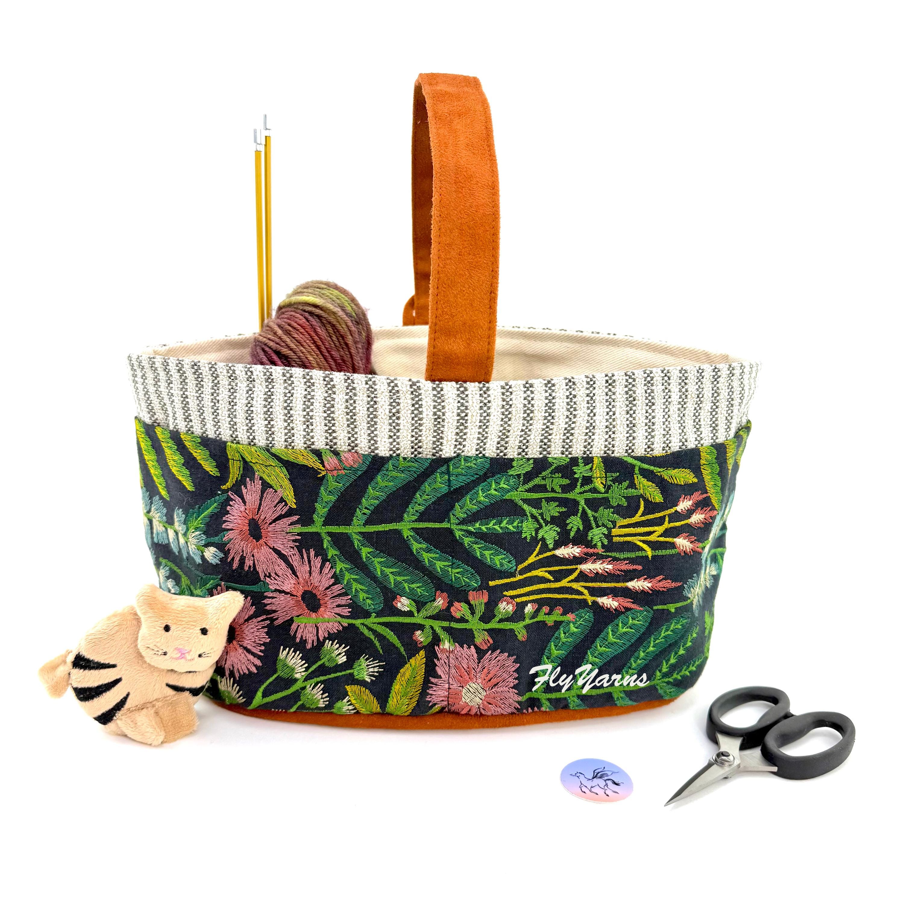 Atenti Short Caddy Meadow is made of an exquistely embroidered floral fabric with 4 outer pockets and 4 inner pockets. A Sienna vegan Ultra Suede handle and a striped woven fabric as outer edge trim sets off this bag. Designed for multiple yarn projects, beading, and crafting it has 8 pockets and plenty of room inside to hold a project. The short height gives you easy access to the inside of the caddy which is lined in a water resistant taffeta. This embroidered bag best fits a hat, sock, or baby clothes project. For a larger project check out the matching Hope Basket-see the link below. Keep your tools together and always be ready for a crafting break 🌴