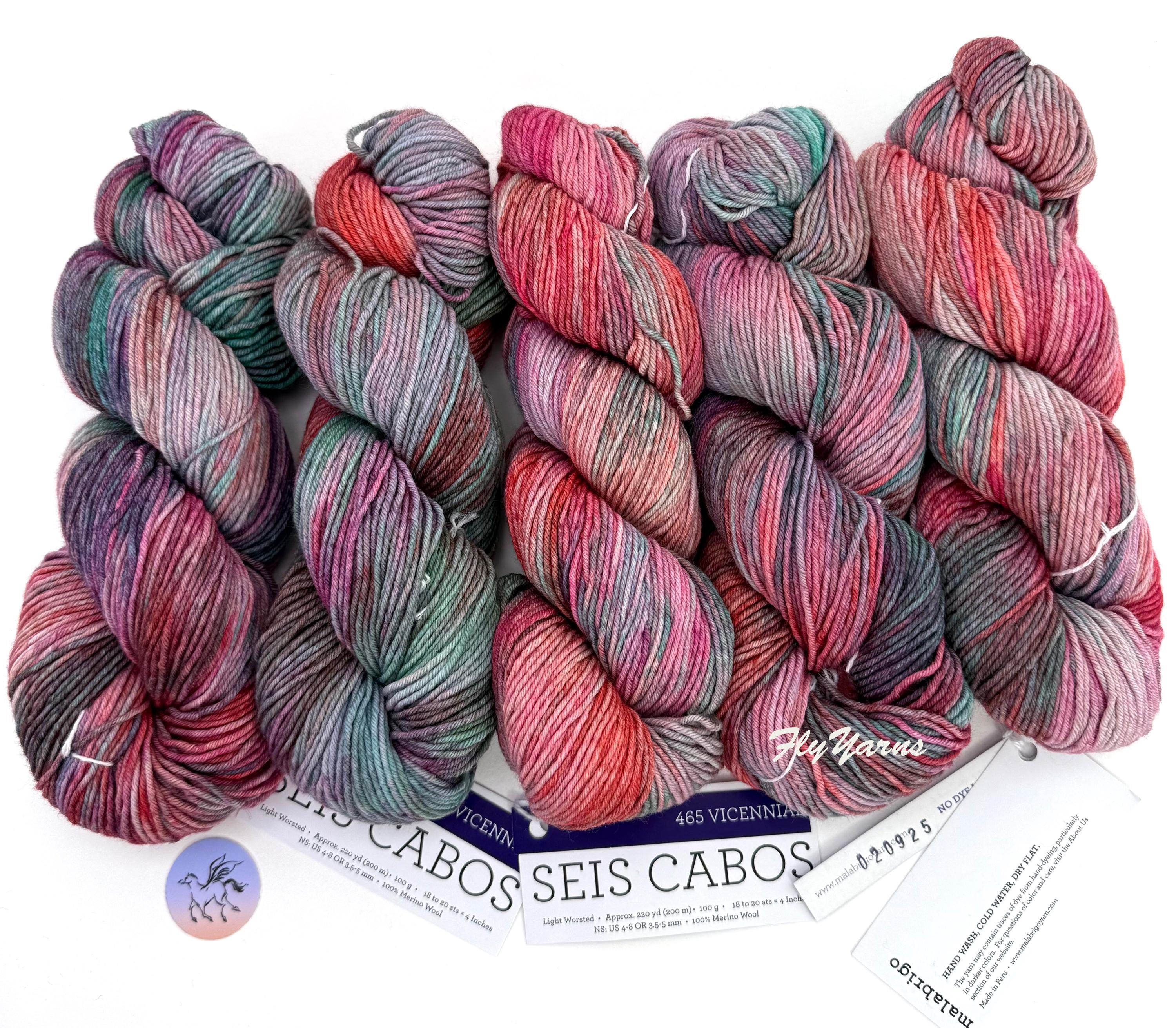 Malabrigo's newest yarn Seis Cabos is a one-of-a-kind construction that not only guarantees great stitch definition but also provides a lovely drape to every project. Meaning “six plies” in Spanish, Seis Cabos is meticulously crafted by tightly twisting each one of its plies. This process creates a unique texture and offers greater strength and resilience to the yarn, ensuring every creation stands the test of time. Great choice for accessories, garments, baby and kids items, housewares, toys, cables, textured stitches and color work.