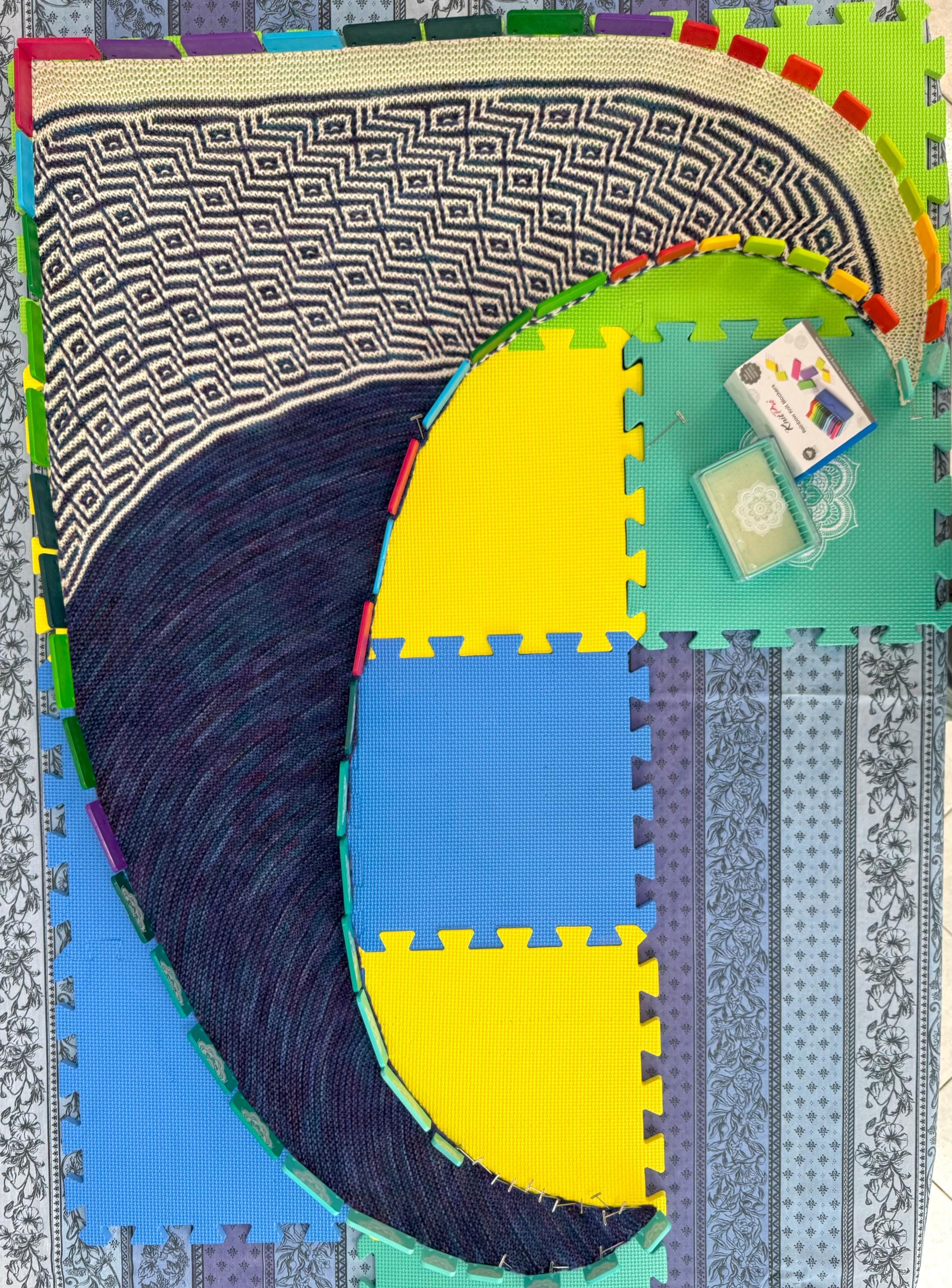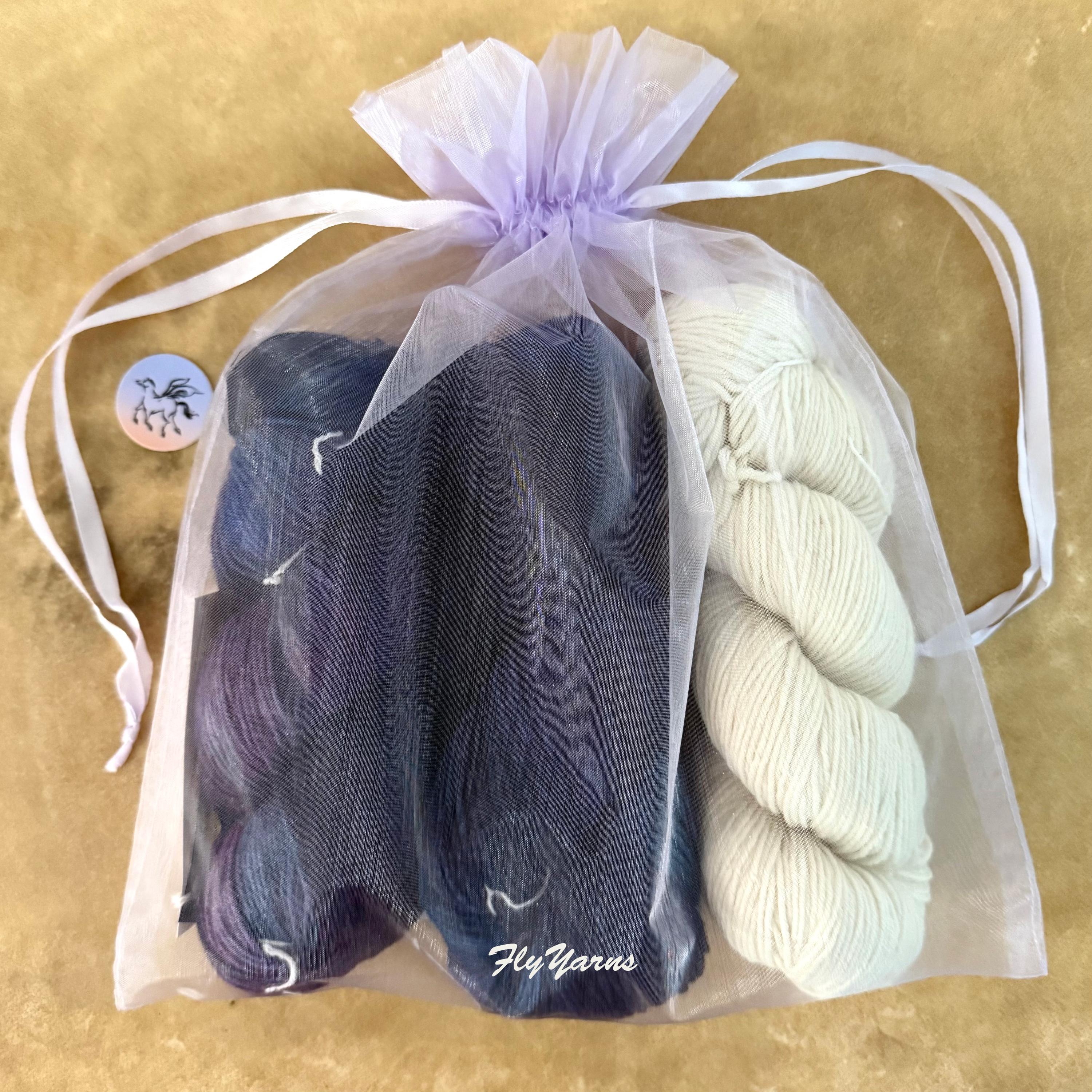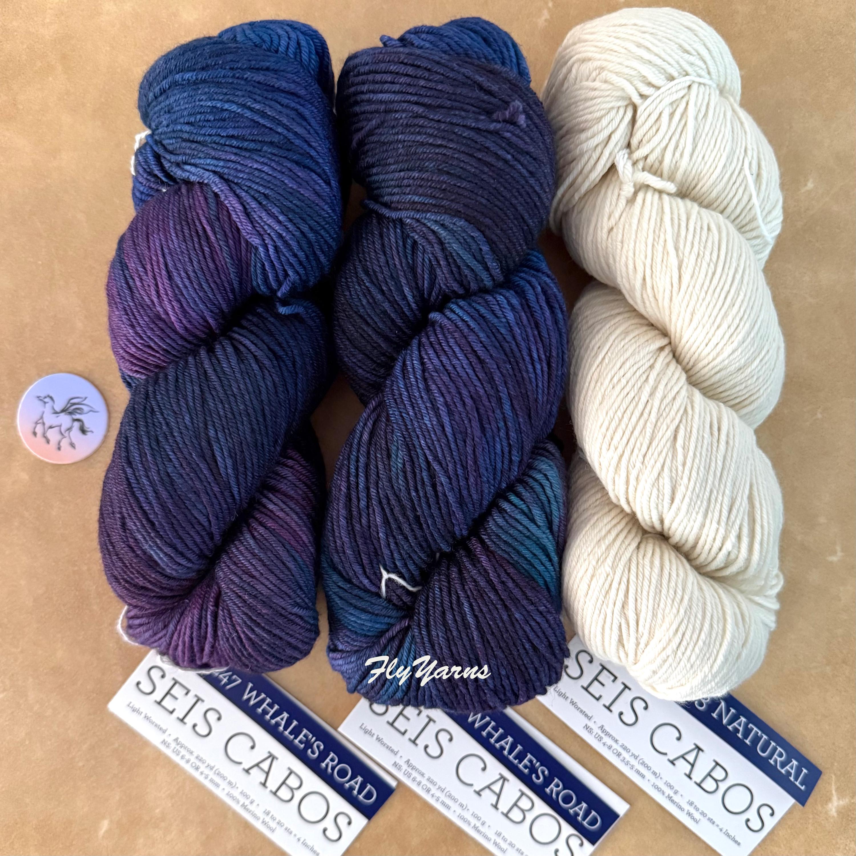 Malabrigo Seis Cabos September 2025 KAL kit in Whales Road and Natural to make the Barnstable Shawl. Pattern by Lisa Hannes is on Ravelry for purchase as the KAL ended.