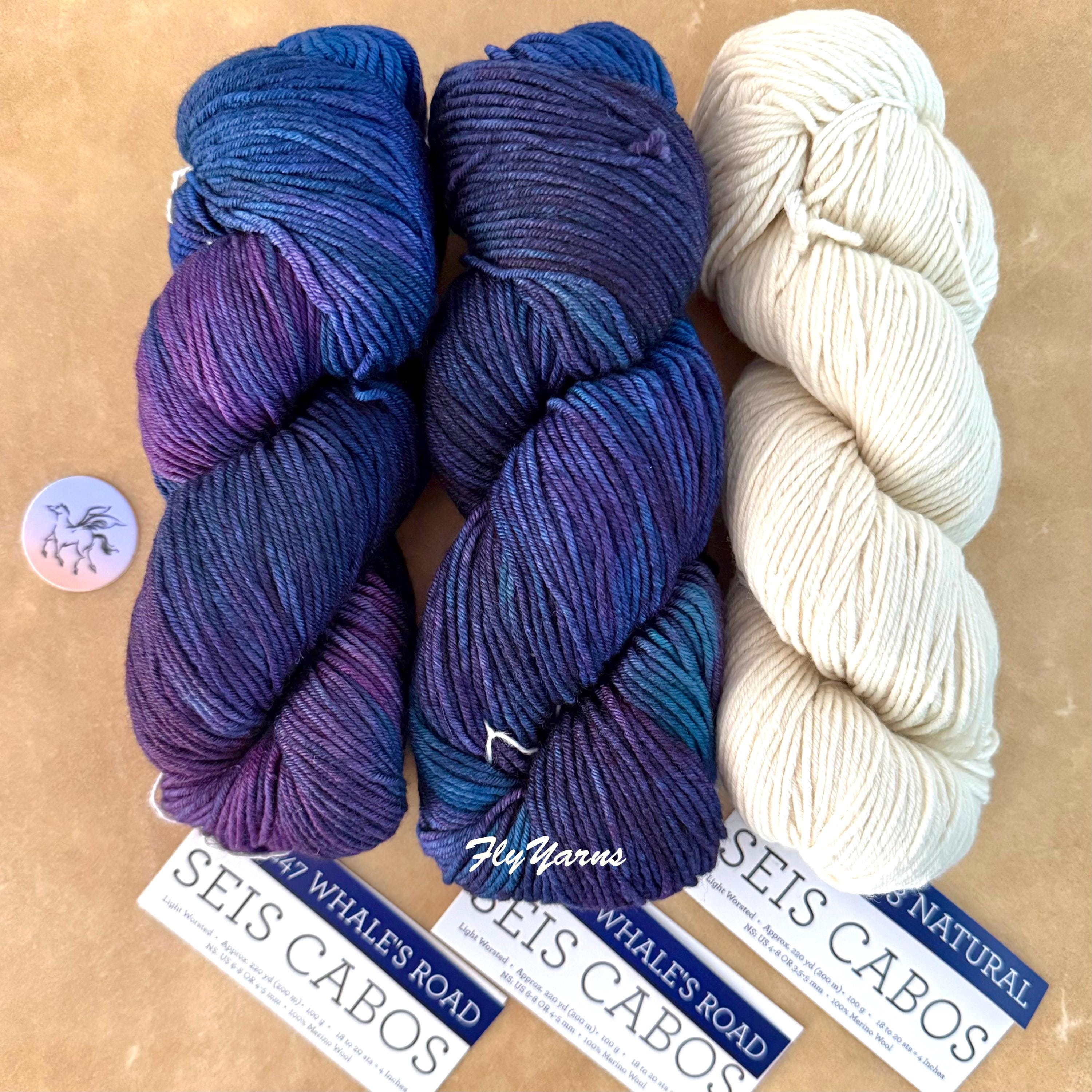 This listing is for 2 hanks Whales Road & 1 hank Natural as shown in photo 1 & 2 and the video.