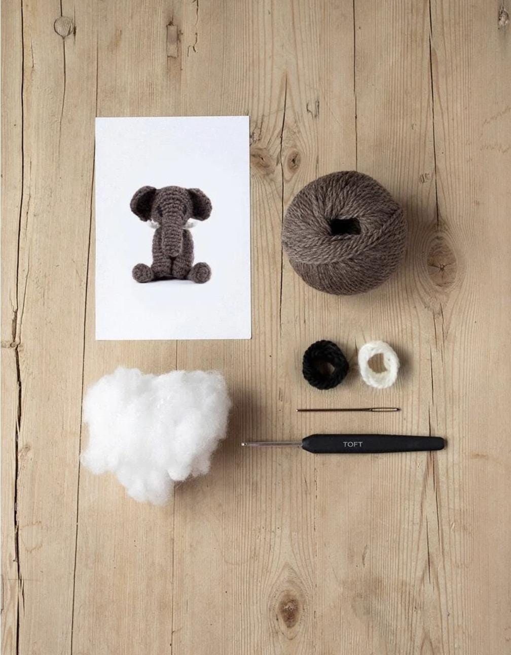 Toft Crochet MINI Albus African Elephant Amigurumi DIY - Hook Stuffing Wool Needle US Terms