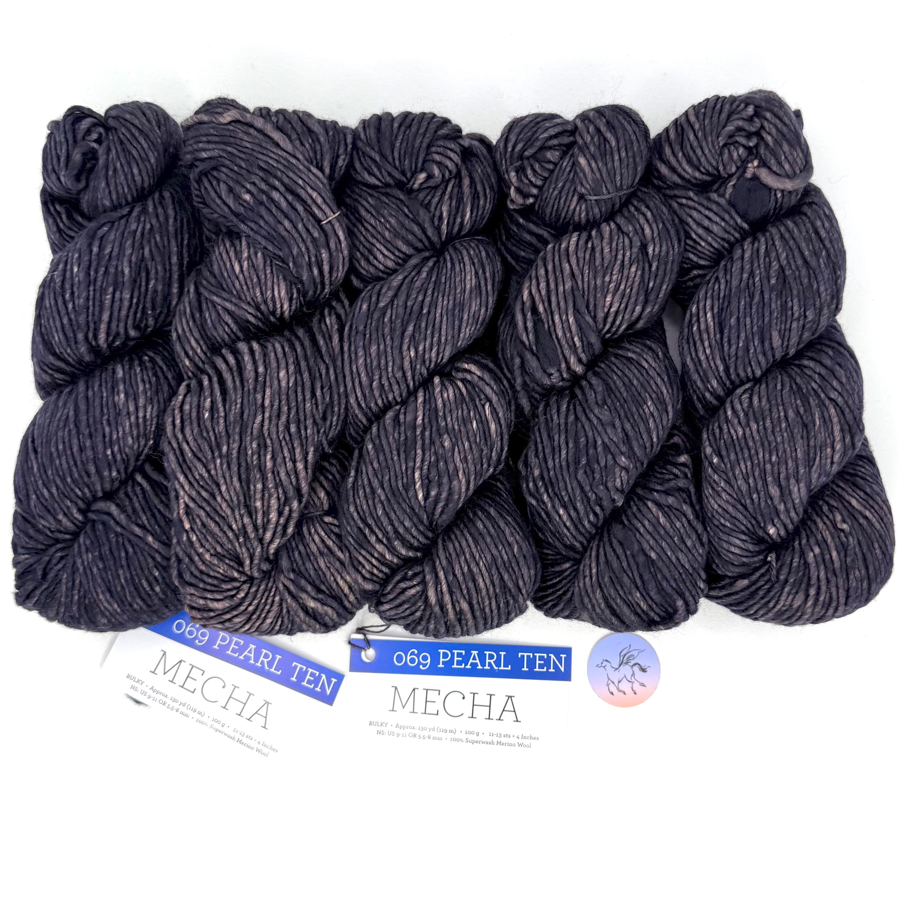 Malabrigo Mecha is a rare single-ply super wash yarn! This super wash merino takes color in the most vivid, rich way, and nowhere is that more apparent than in the multi-layered hues of Mecha! Soft as always, Mecha Merino Wool is a slightly thick-and-thin yarn, with a lovely loft, and is the perfect choice for quick but not-too-heavy projects. A super wash yarn in single-ply is a rare find especially with gray colors and tones. Super wash means you can wash your garments in cold water, gently, and your items will not shrink or felt. This listing has 10 skeins all from the same batch in color Pearl Ten 069. Be sure to buy enough for your project. Priced per hank. Dye Lot 24 11 23