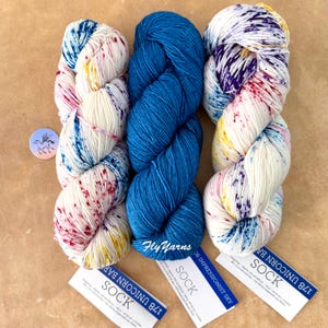 Be sure to get enough yarn to complete your project since each bag is a different dye lot. Hanks may vary from one another even within the same bag. To ensure random color distribution, work from two balls of yarn at once, alternating a few rows from each ball. Priced per hank.