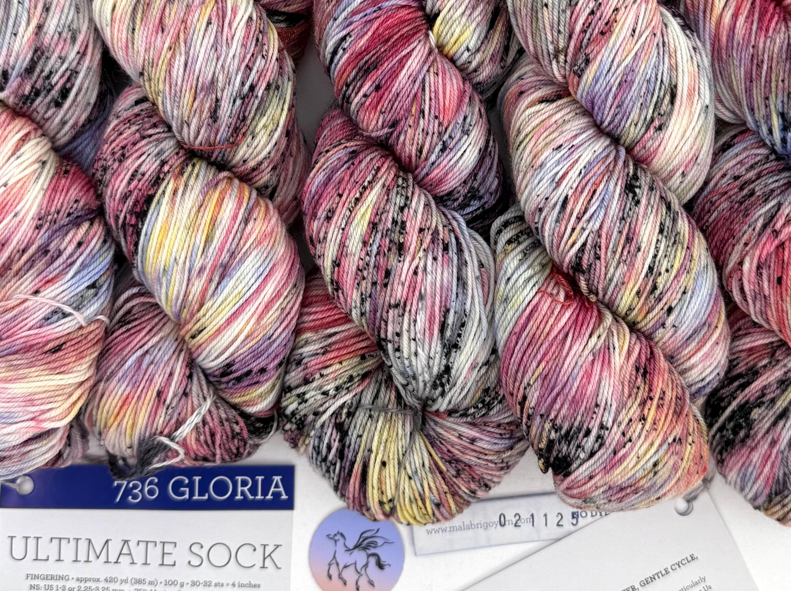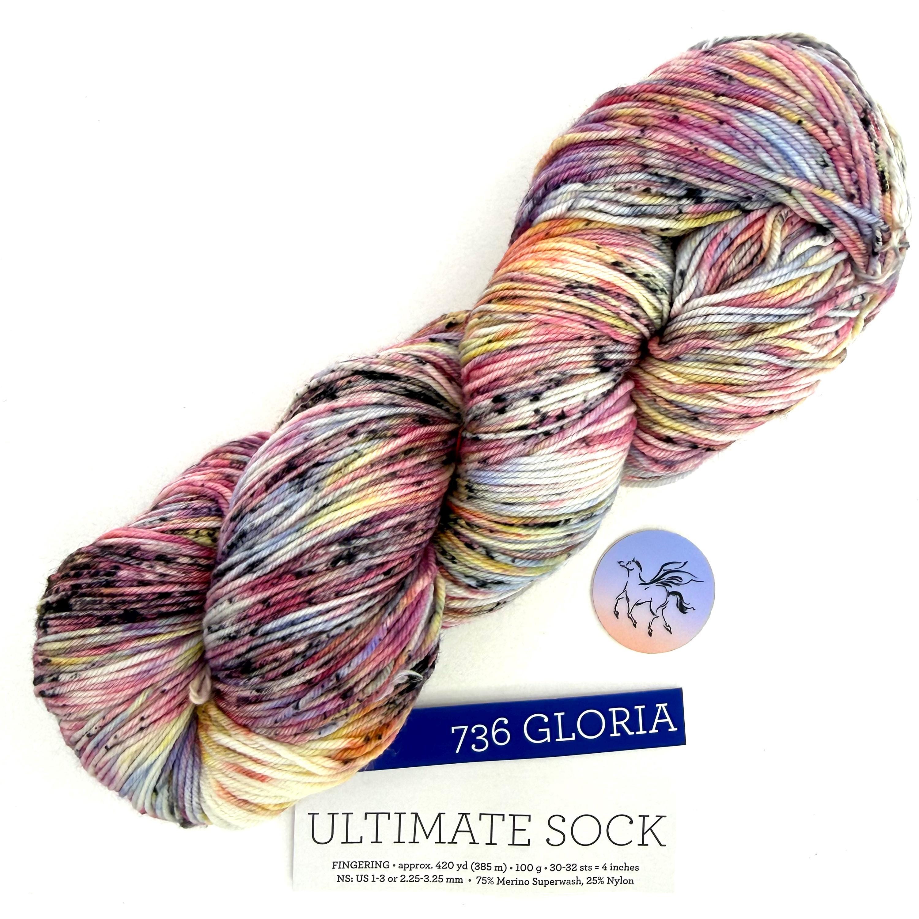 Ultimate Sock takes Malabrigo sock yarn and elevates it a level by adding 25% Nylon to the superwash merino that everyone already knows and loves. It is perfect to knit your lovely socks and make sure they will be resistant and durable at the same time. Great for: Socks and garments with a lot of friction. This listing is for the color GLORIA a speckled Sock Yarn in a rainbow of colors. Ultimate Sock is a 4-ply fingering weight yarn. DYE LOT:02 11 25