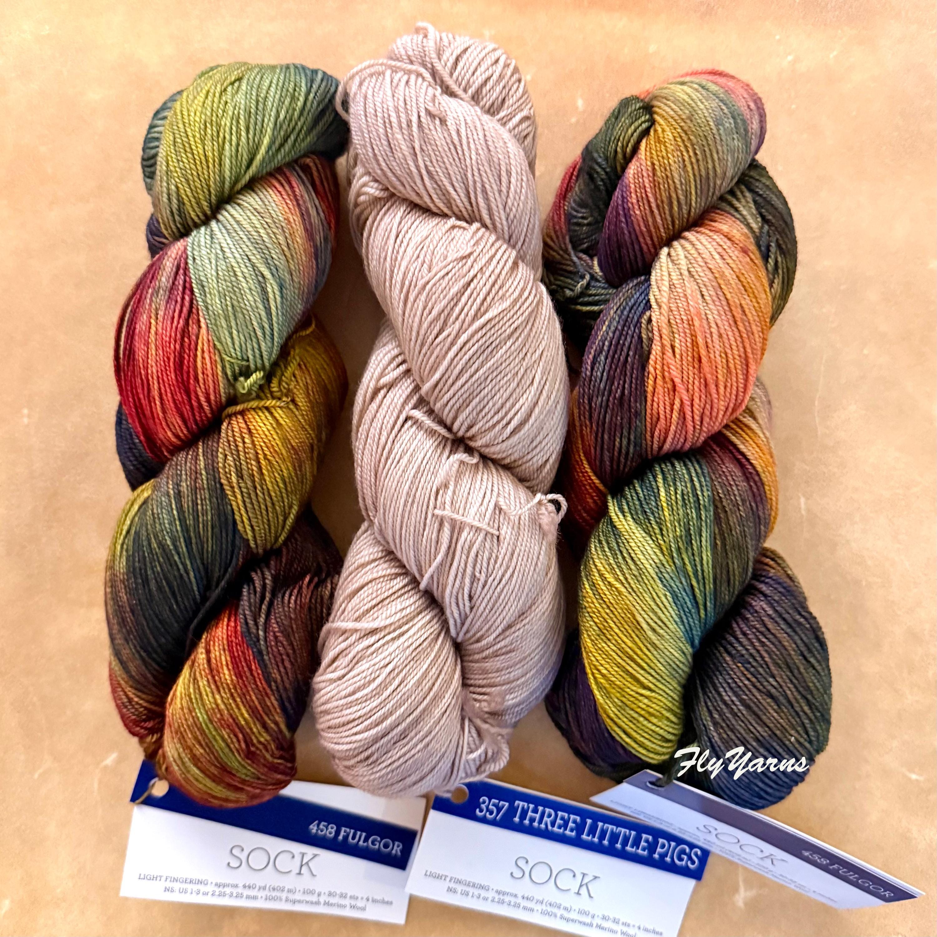 Sock Yarn is 100% Merino wool. Spun from luxurious merino and treated to make it machine washable for easy care. Kettle-dyed beautifully soft yarn in a fingering weight "Sock" is an excellent yarn for hand knitters to create unique and exquisite socks, shawls and sweaters. This is a plied hand-dyed super wash yarn which makes it machine washable.
