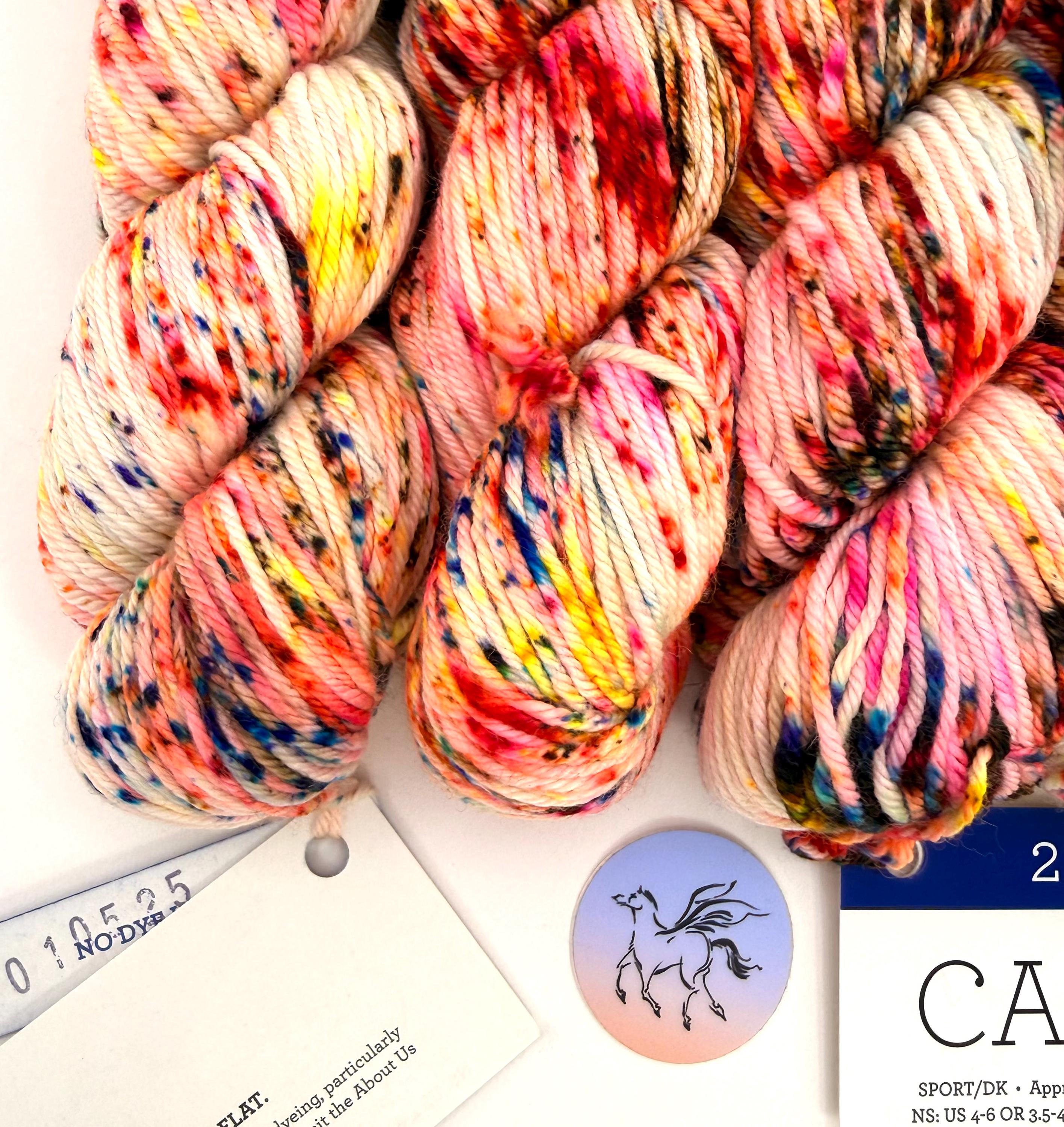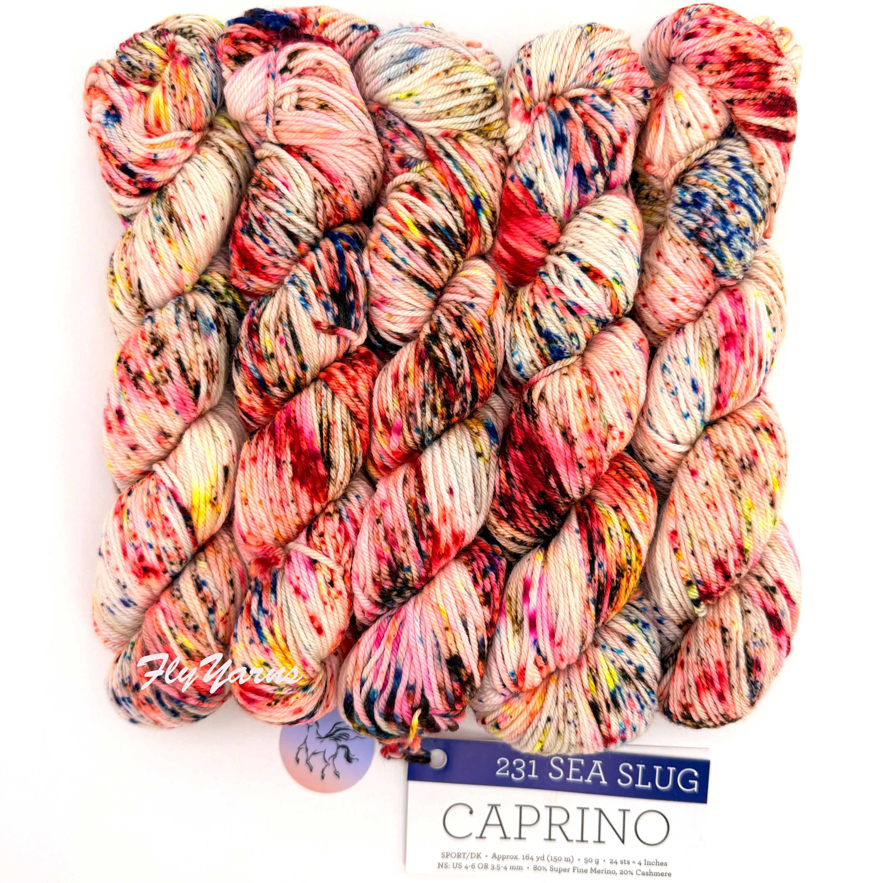 Malabrigo Caprino Sea Slug 231 Yarn is the perfect combination of luxury fibers that assure a special softness to your garments. Sea Slug is a hand-dyed speckled Ivory base color which is kettle dyed onto fibers that you will always want to caress. 80% Super Fine Merino blended with 20% Cashmere this yarn is perfect for accessories and hand-wash-friendly garments, next-to-skin wear, lace, cables, color work, and textured stitches.