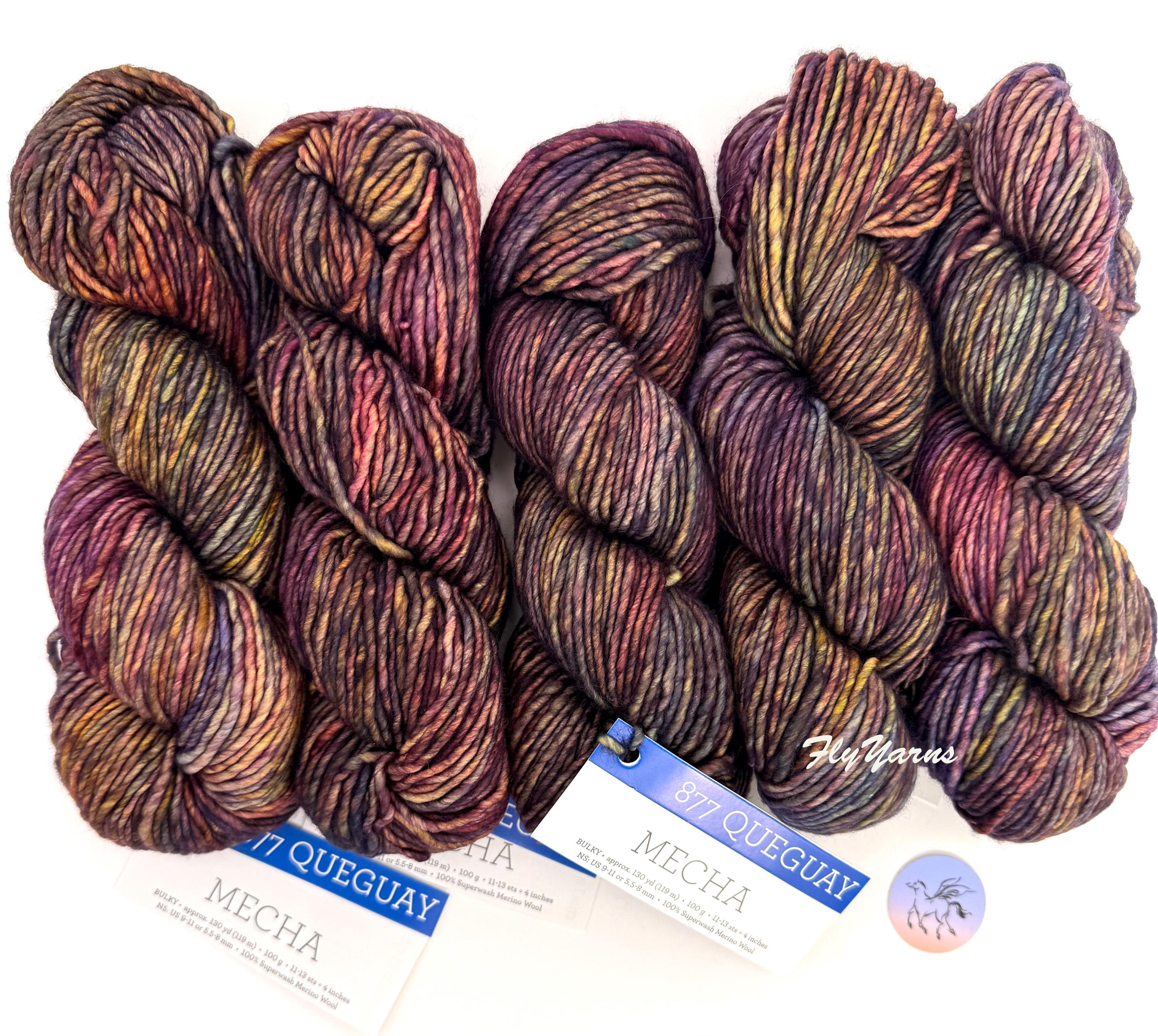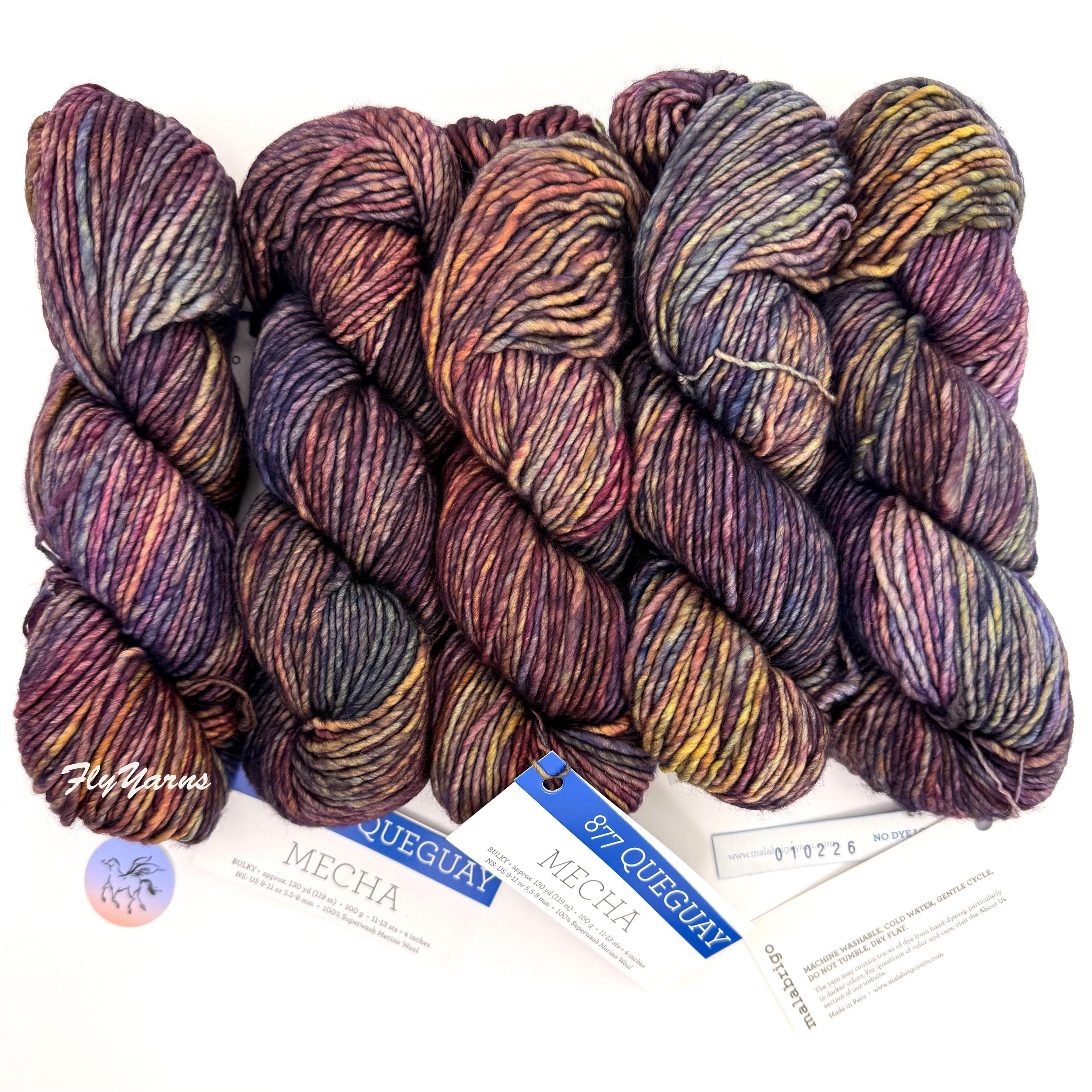 Malabrigo Mecha is a rare single-ply super-wash yarn! This merino takes color in the most vivid, rich way. Soft as always, Mecha Merino Wool is a slightly thick-and-thin yarn, with a lovely loft, and is the perfect choice for quick but not-too-heavy projects. Super-wash means you can wash your garments in cold water, gently, and your items will not shrink or felt. All from the same batch in color Queguay. Be sure to buy enough for your project. Priced per hank. Dye Lot: 01 02 26 bag of 10